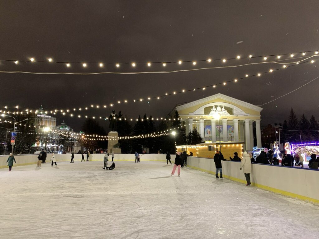 В этом году в столице Марий Эл функционирует несколько открытых катков – от центральных площадок до тихого спального двора. Первый известен почти каждому – это каток на площади им. В. И. Ленина. Рядом стоит главная елка, что добавляет новогоднего настроения горожанам и гостям столицы, катающимся на коньках. Каток работает в будние дни – с 13:00 до 21:00, а в выходные – с 10 утра до 21 вечера. Вход стоит 200 рублей. По такой же цене имеется прокат коньков.