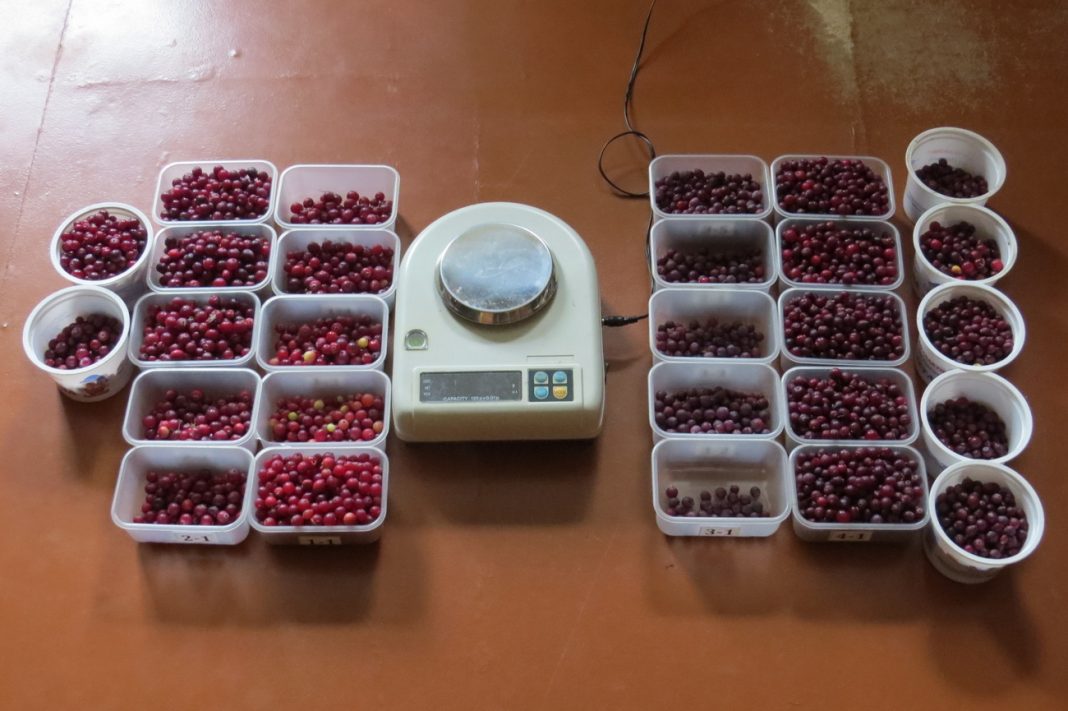 При этом «некондиционных» – сухих, гнилых и перезрелых ягод на первом участке оказалось в 18,4 раза больше, чем в прошлом году, а на втором – 8,3 раза больше, сообщил сотрудник заповедника Геннадий Богданов. Вес сотни ягод в этом году на УП № 1 составил 55,18 грамма, на УП № 2 – 41,94 грамма.
