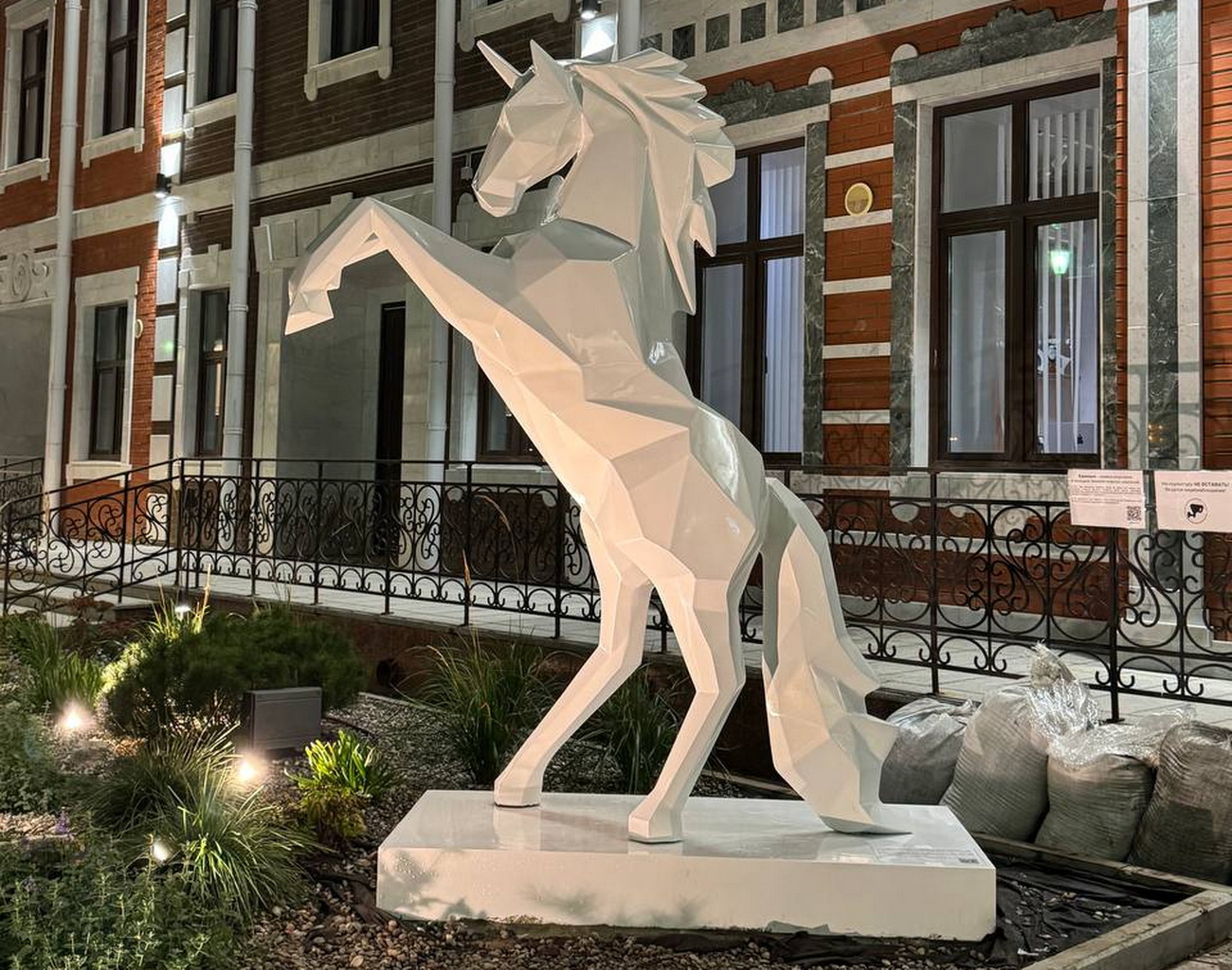 Табличка объясняет, что единорог – символ стартапов и молодых технологических компаний. Установили арт-объект представители городского сообщества стартапов GdeTech.