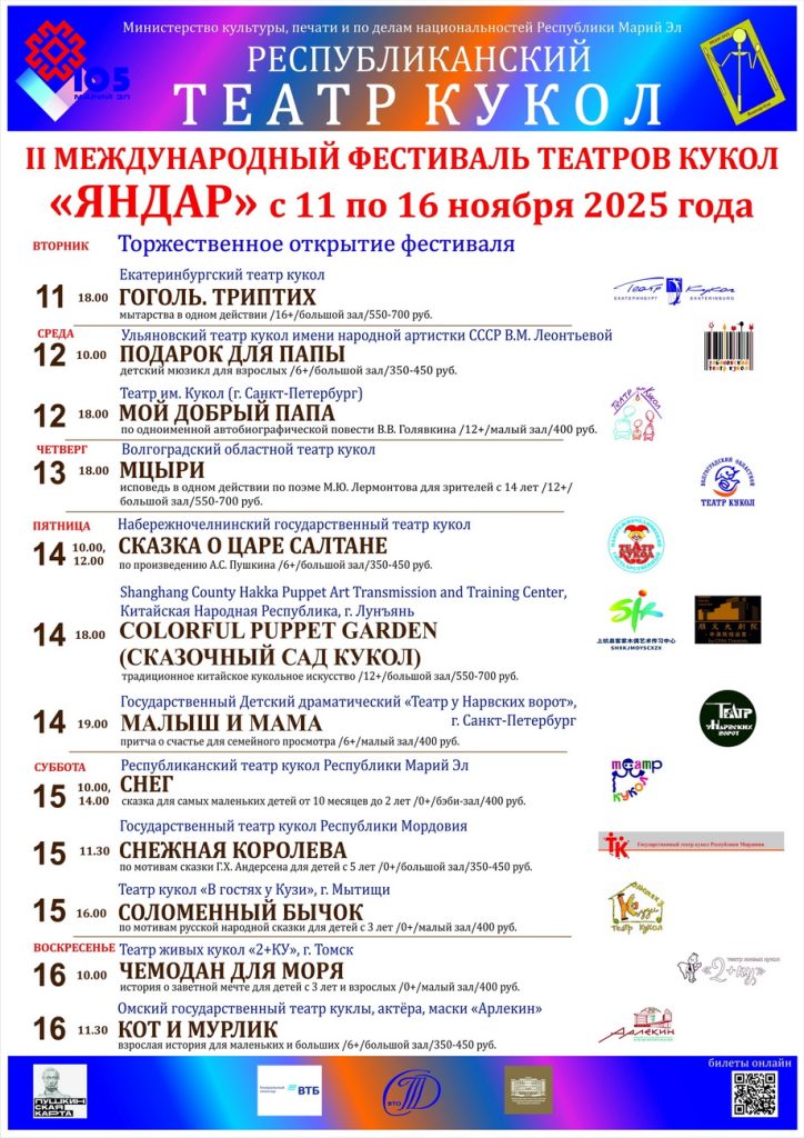 Сегодня фестиваль откроется спектаклем Екатеринбургского театра кукол «Гоголь. Триптих». Закроется он в воскресенье 16 ноября спектаклем Омского театра куклы, актера, маски «Арлекин» под названием «Кот и Мурлик».