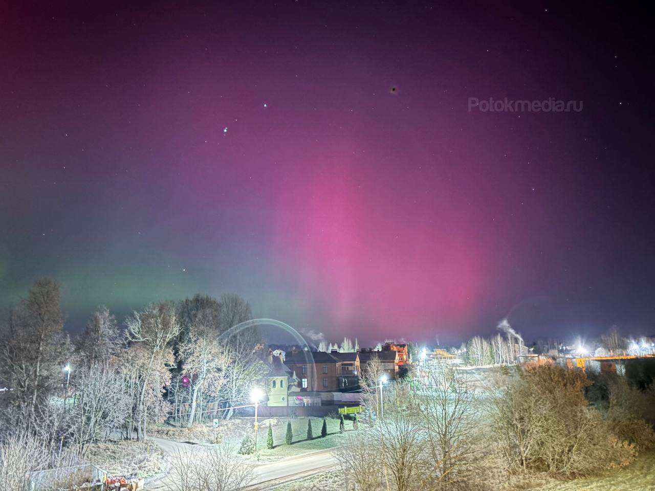 Ранним утром 12 ноября, незадолго до восхода Солнца на северо-востоке уже стояло северное сияние. А около девяти часов вечера ожидается пик прилета корональной массы от вспышки высшего класса Х, которая произошла 10 ноября.