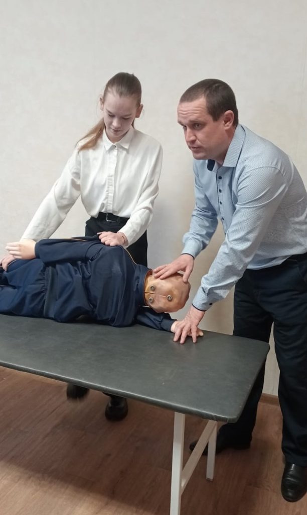 Сотрудники филиала провели урок по оказанию первой помощи пострадавшему от поражения электрическим током, продемонстрировали практические действия по реанимации учебного манекена Гоша и ответили на вопросы школьников.