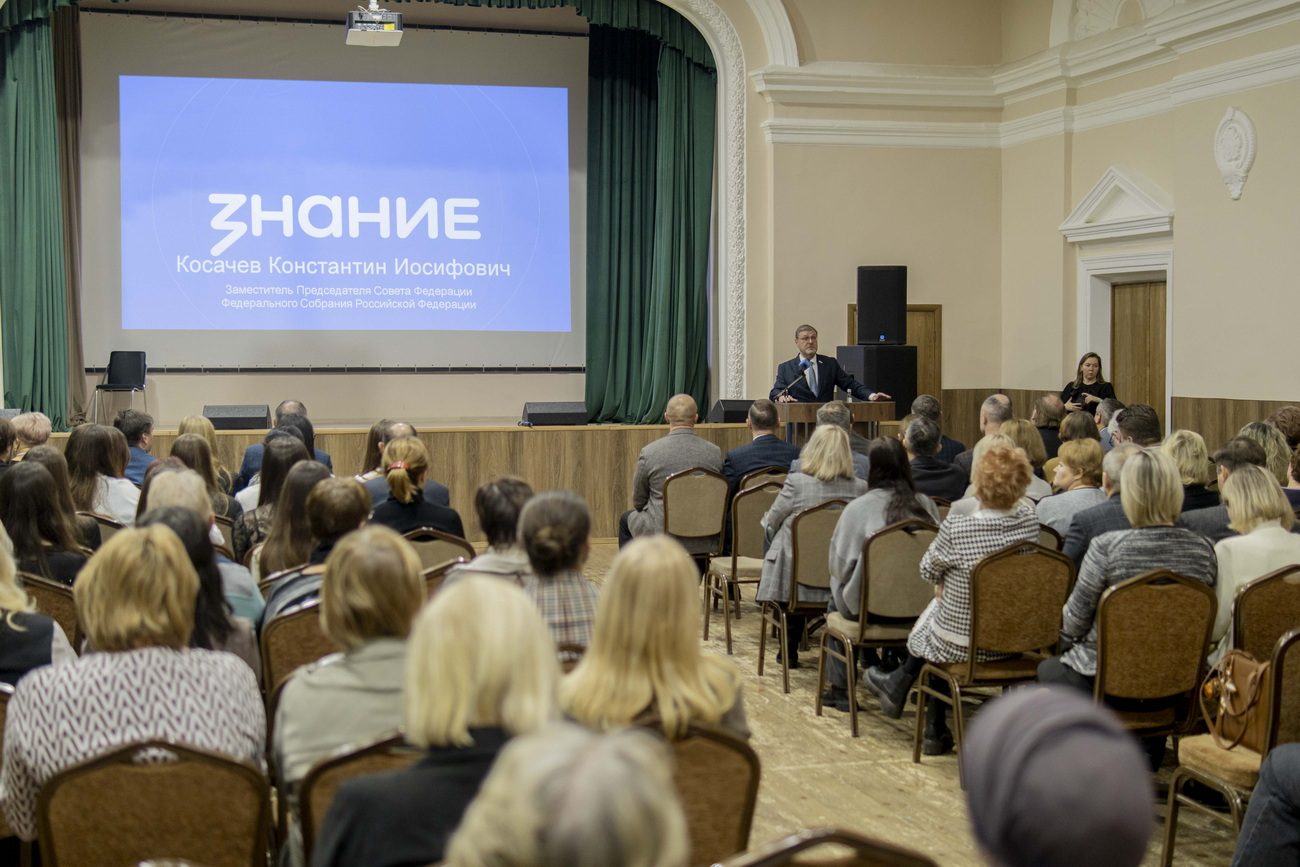 Спикером выступил сенатор РФ, зампредседателя Совета Федерации и член комитета по международным делам Константин Косачев. Встреча под названием «Вступая во вторую четверть XXI века: что нас ждет?» прошла в рамках проекта «Знание.Лекторий».