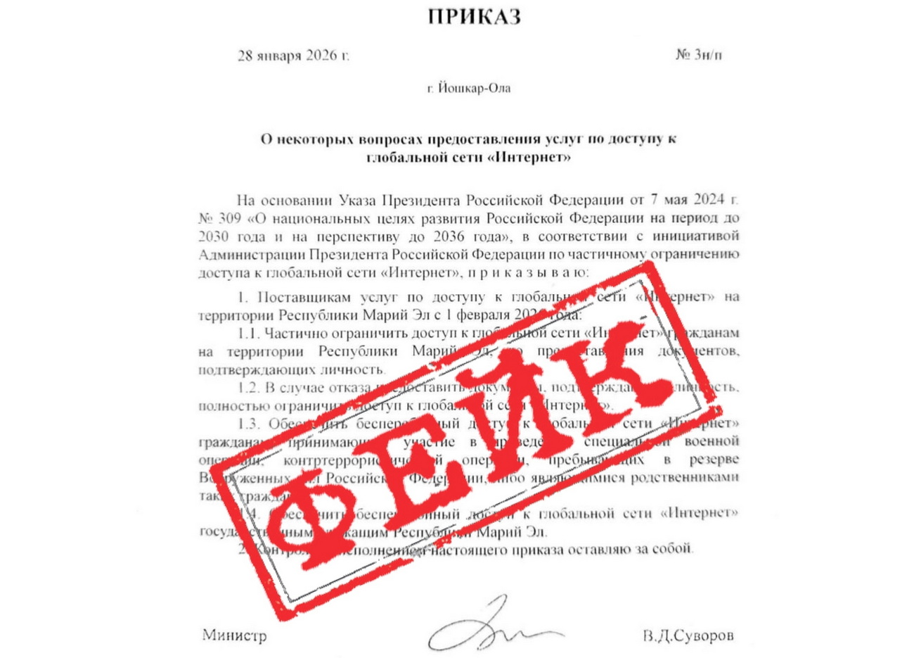 В интернете появился недостоверный приказ министерства цифрового развития Марий Эл
