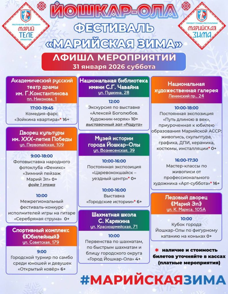 В выходные дни 31 января и 1 февраля в Йошкар-Оле продолжатся мероприятия фестиваля «Марийская зима».