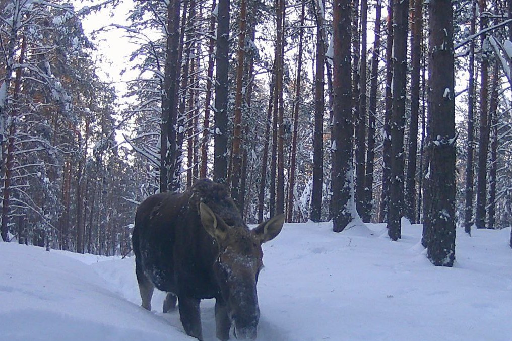 Сотрудники национального парка «Марий Чодра» запечатлели, как уставший лось пробирается по узкой тропинке.