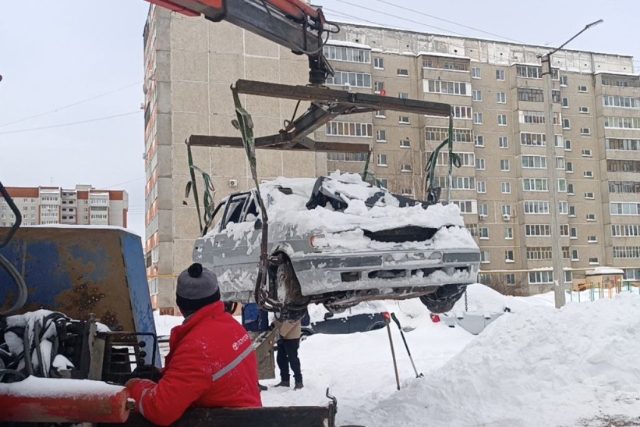 В Йошкар-Оле продолжается эвакуация брошенных под снегом автомобилей. Это делается для упрощения расчистки дворовых территорий от снега.