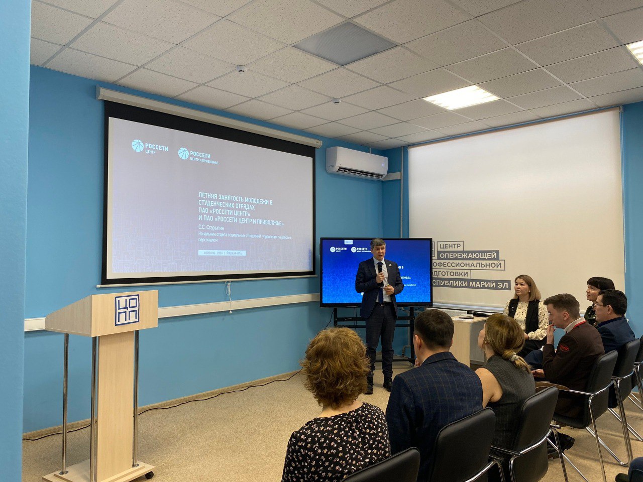 На мероприятии «Карьерный навигатор: летняя занятость молодёжи» студентам Йошкар-Олинского технологического колледжа и Йошкар-Олинского строительного техникума рассказали о привлекательности рабочих профессий среди молодежи, системе наставничества, социальных гарантиях, перспективах, льготах и преимуществах работы в ГК «Россети» для молодых специалистов.