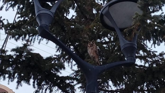 В центре города жители всё чаще замечают лесных птиц. На этот раз на бульваре Чавайна горожане заметили ушастую сову, которая устроилась на еловой кроне.