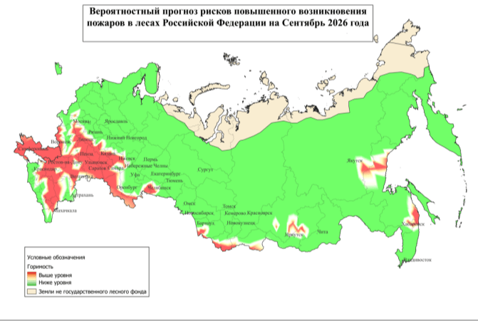 Федеральная Авиалесоохрана на основе данных Росгидромета разрабатывает прогноз повышенных рисков возникновения лесных пожаров на пожароопасный сезон – с апреля по октябрь. Каждый месяц этот прогноз уточняется.