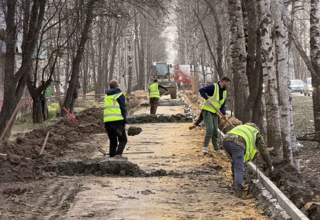 Сейчас рабочие устанавливают здесь бортовые камни. Работа ведется в рамках национального проекта «Инфраструктура для жизни», сообщает врио мэра Антон Трудинов.