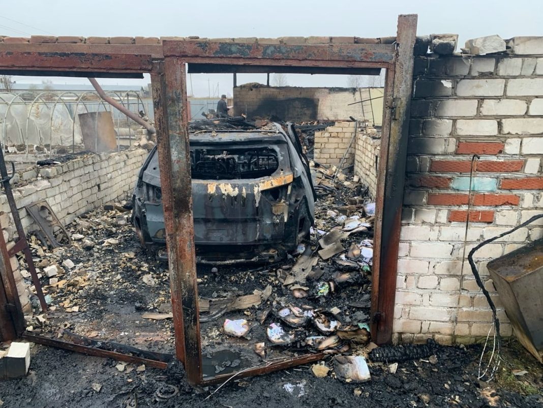 В четвертом часу утра в воскресенье 19 апреля владелец хозяйства проснулся от доносившегося со двора треска. Одновременно с ним возгорание обнаружили соседи. Горели два гаража и хозпостройка, расположенные на территории участка.