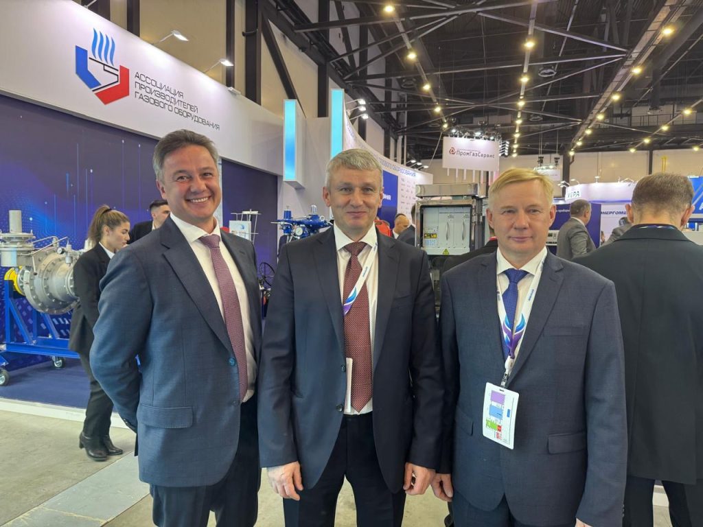 Член Правления, начальник Департамента ПАО «Газпром» Владимир Марков, член Правления, начальник Департамента ПАО «Газпром» Вадим Симдякин и генеральный директор ООО «Газпром межрегионгаз» Сергей Густов провели совещание с руководителями дочерних обществ Группы «Газпром межрегионгаз» на полях Петербургского международного газового форума.