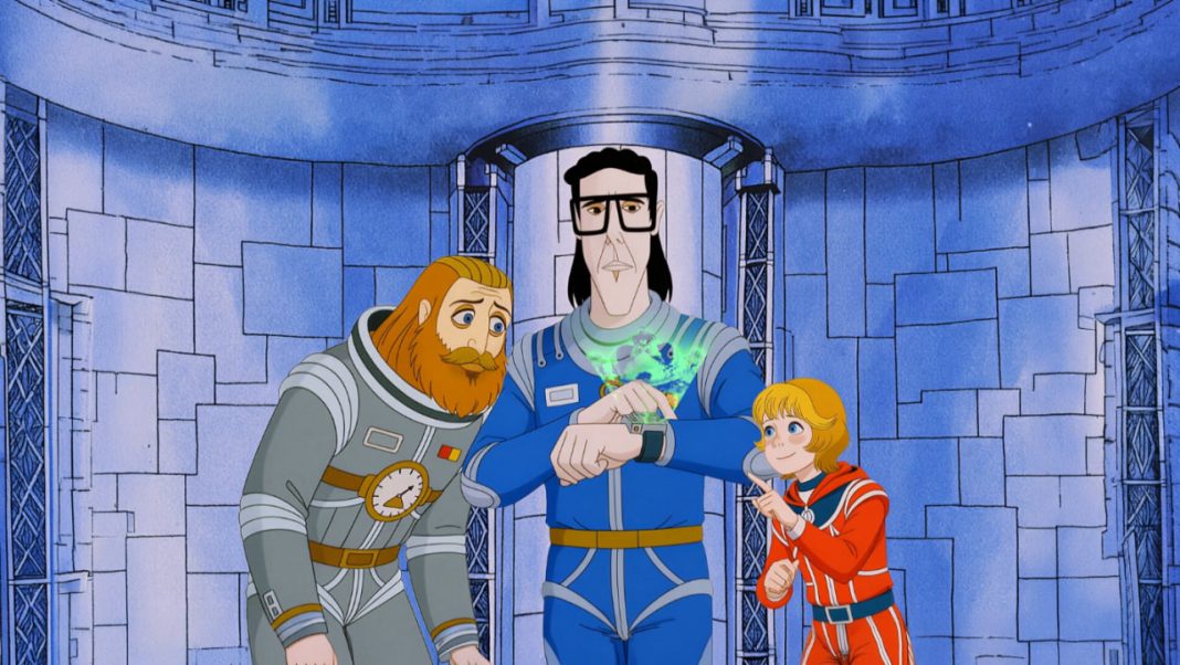 Специально к мероприятию Сбер совместно с киностудией «Союзмультфильм» создали при помощи нейросетей короткометражный мультфильм по мотивам легендарной ленты «Тайна третьей планеты» (реж. Роман Качанов).